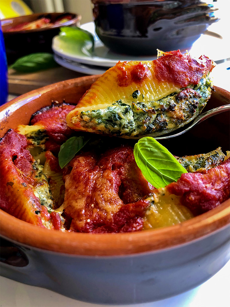 Conchiglioni ripieni con spinaci e ricotta di capra
