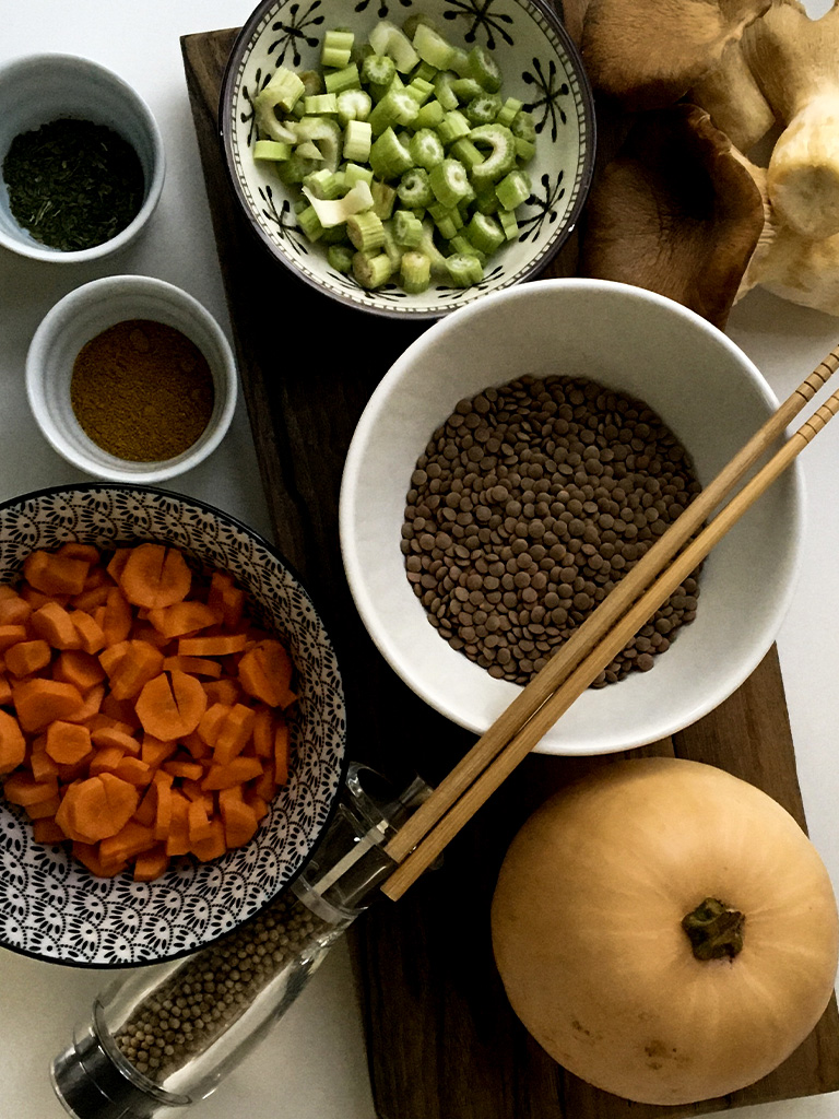 Curry di zucca e lenticchie con latte di cocco