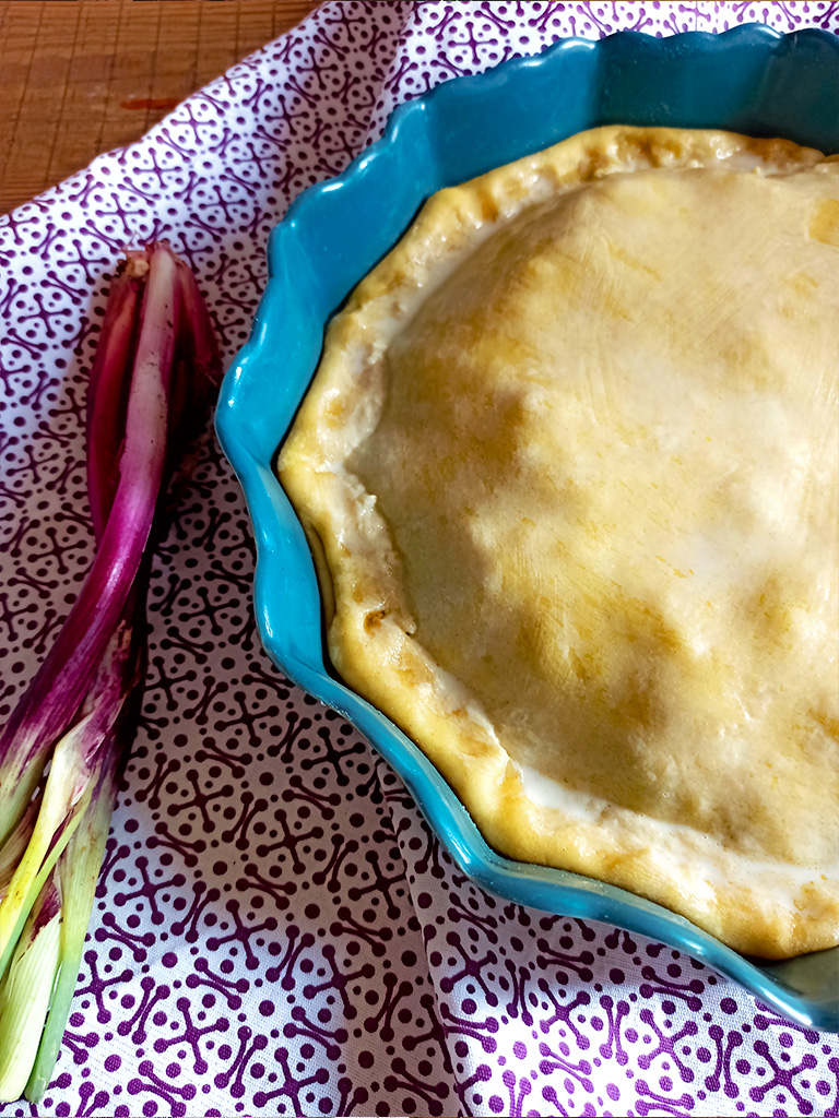 Stendere il secondo panetto di brisée e coprire la pizza, sigillando e ripiegando i bordi.