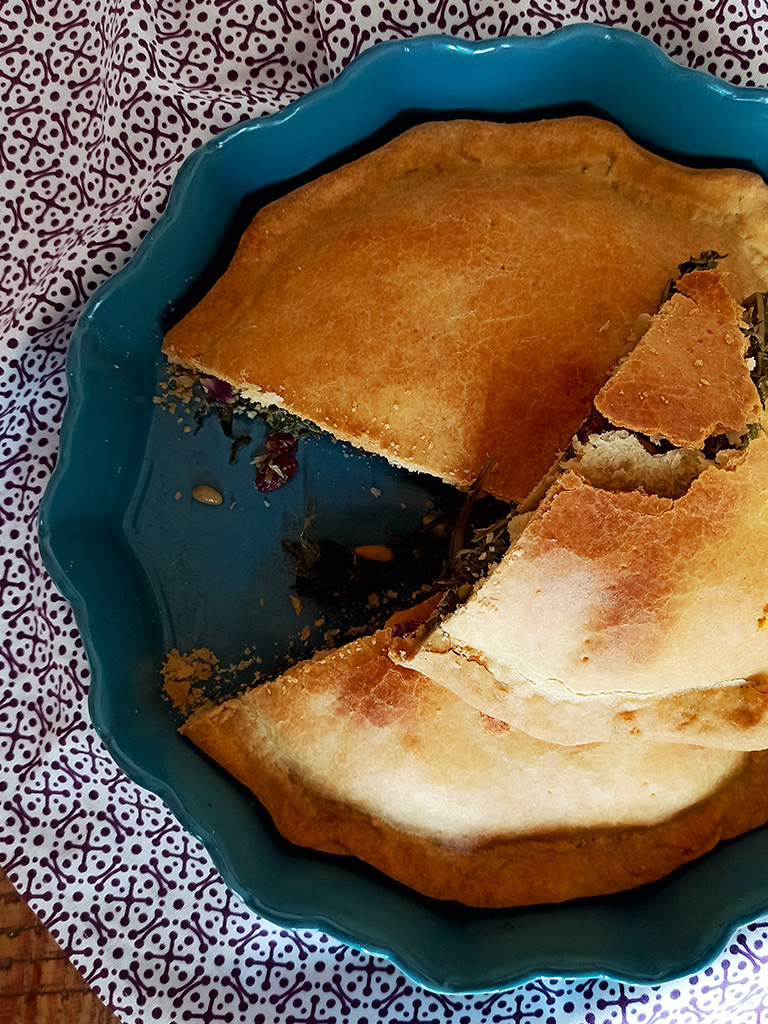 Pizza di sivoni e sponsali con uvetta e pinoli